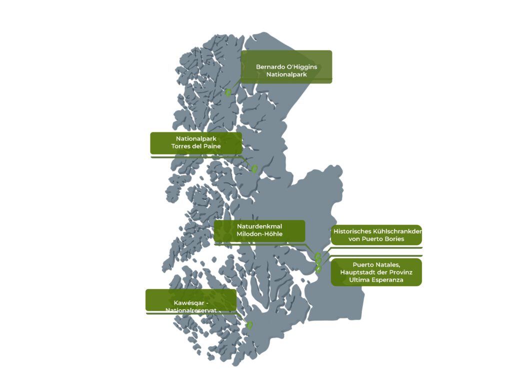 Mit einer Fläche von etwa 19.000 Quadratkilometern ist die Provinz Última Esperanza ein Naturschatz im chilenischen Patagonien. Die Hauptstadt ist Puerto Natales, eine bezaubernde Stadt, die als Tor zum beeindruckenden Nationalpark Torres del Paine und Bernardo O’Higgins gilt.